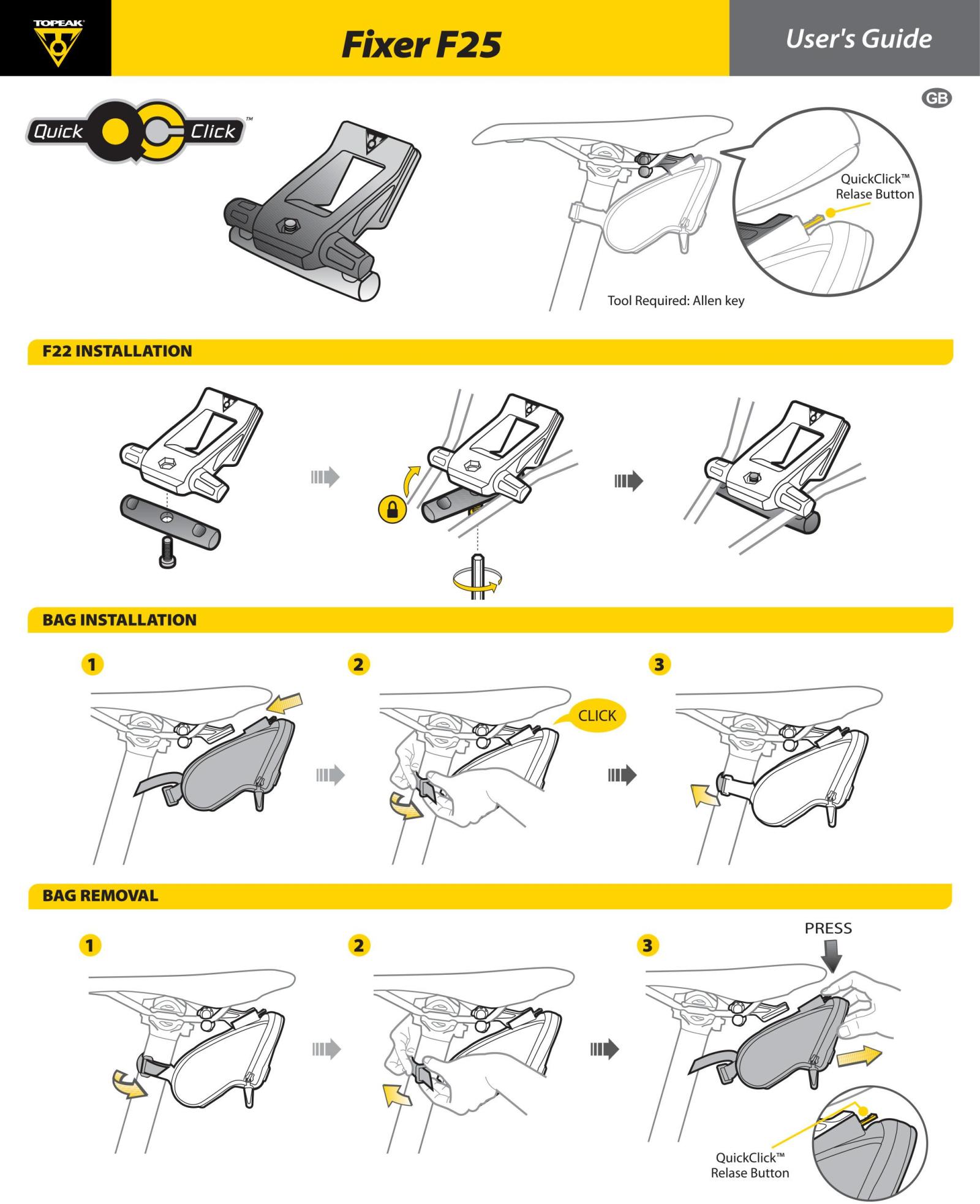 - Bag Attachment: QuickClick® Handlebar Mount (Fixer 8e)