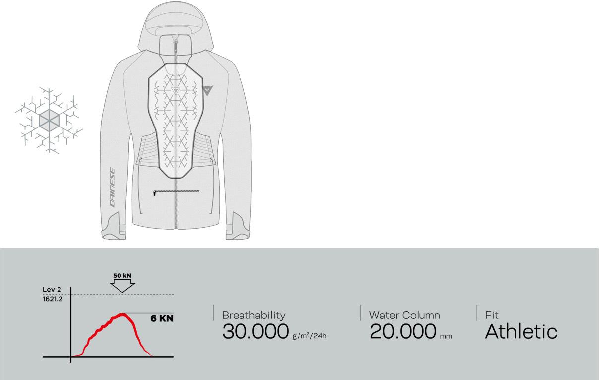Dainese HP S+ jackets represent the ultimate in on-piste skiing technology. Integrated protection in the garments allows for maximum dexterity and freedom of movement on downhill slopes, as well as superior comfort and thermal insulation. Whatever the weather. HP DIAMOND II S+ tops the Dainese range for on-piste skiing. The jacket features an integrated Flexagon back protector and X-Weave protectors on the forearms, sewn into the structure.